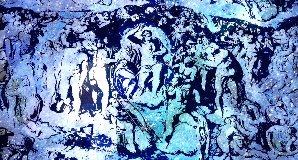 And later, much later, the fountains and bridges faded to a hush, to a crowded, shoulder to shoulder throng looking up. Quiet, neck-straining to take in the paintings up above and how strange it seems now. That oddness in the thought of rubbing shoulders with no fear, and they stood crammed in together, tasting the air, breathing without masks, without hand gel.
